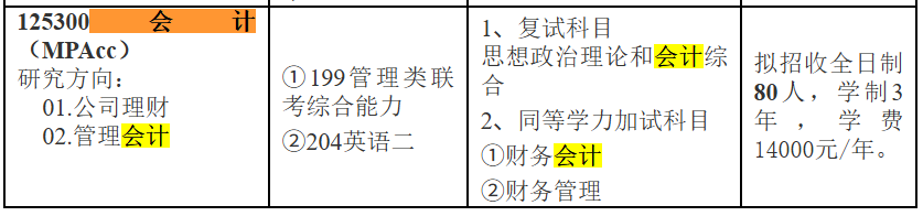 会计专硕MPAcc几个核心信息如下